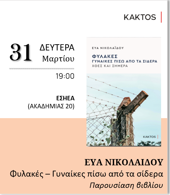 Οι Εκδόσεις ΚΑΚΤΟΣ και η συγγραφέας Εύα Νικολαΐδου έχουν την τιμή