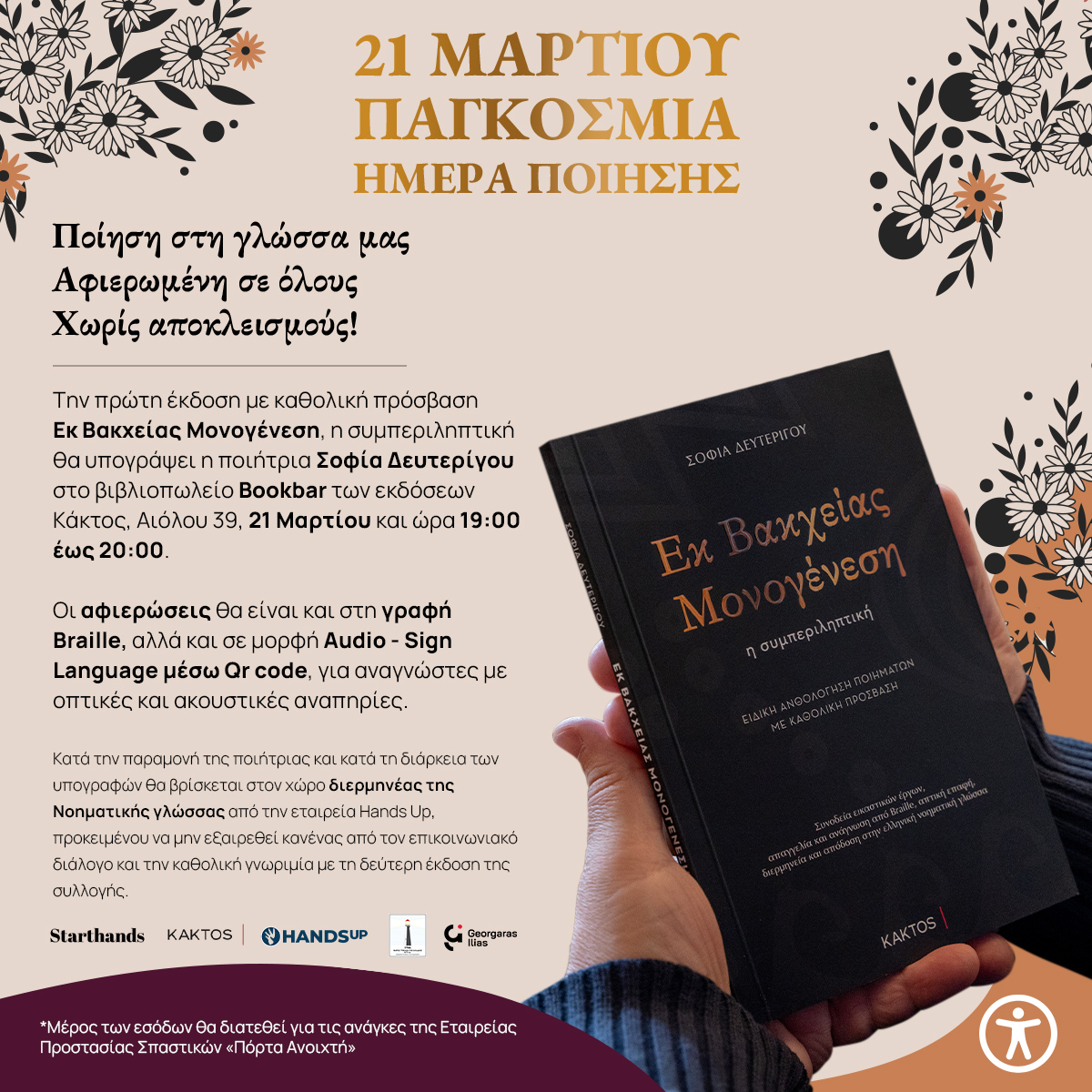 Απαγγελία με παράλληλη διερμηνεία στην ελληνική νοηματική γλώσσα.  Κατάλληλο για όλες τις ηλικίες και για ΑμεΑ (book – audiobook – signbook)