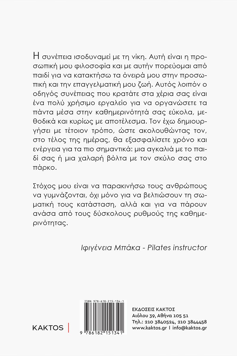 Η συνέπεια ισοδυναμεί με τη νίκη. Αυτή είναι η προσωπική μου φιλοσοφία και με αυτήν πορεύομαι από παιδί για να κατακτήσω τα όνειρά μου στην προσωπική και την επαγγελματική μου ζωή. Αυτός λοιπόν ο οδηγός συνέπειας που κρατάτε στα χέρια σας είναι ένα πολύ χρήσιμο εργαλείο για να οργανώσετε τα πάντα μέσα στην καθημερινότητά σας εύκολα, μεθοδικά και κυρίως με αποτέλεσμα. Τον έχω δημιουργήσει με τέτοιον τρόπο, ώστε ακολουθώντας τον, στο τέλος της ημέρας, θα εξασφαλίσετε χρόνο και ενέργεια για τα πιο σημαντικά: μια αγκαλιά με το παιδί σας ή μια χαλαρή βόλτα με τον σκύλο σας στο πάρκο.