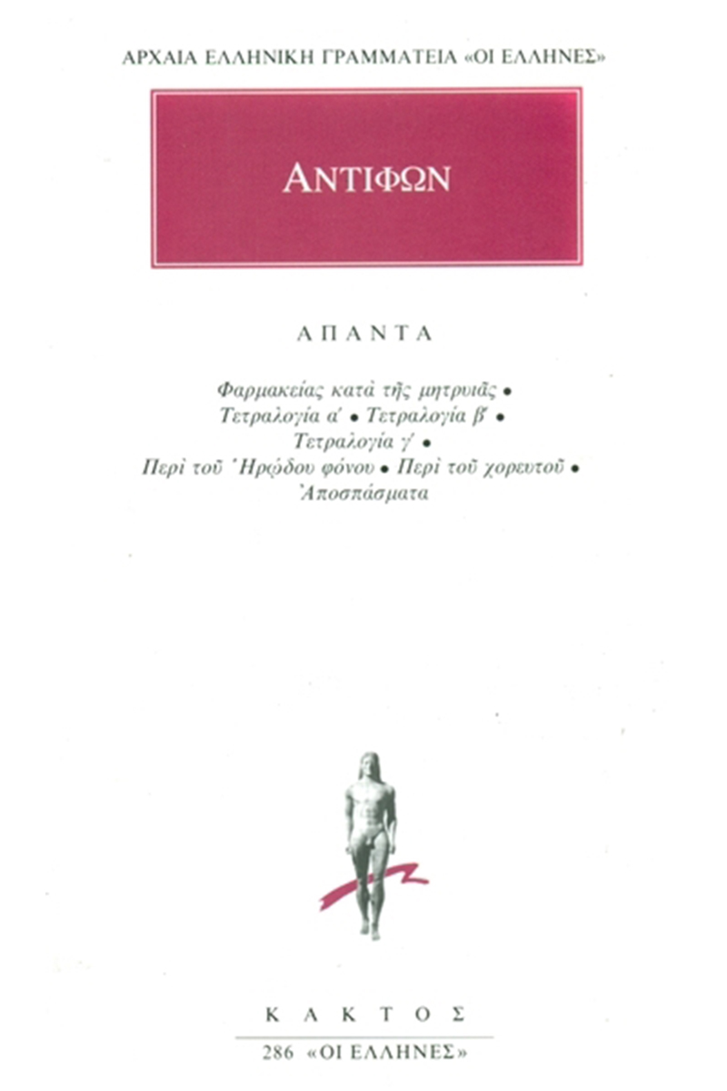 Ρητορικοί λόγοι που εκφωνήθηκαν με αφορμή διάφορες υποθέσεις ενώπιον δικαστηρίων. — «Φαρμακείας κατά της μητρυιάς»: Ένας νέος κατηγορεί τη μητρυιά του ότι, χρησιμοποιώντας σαν εκτελεστικό όργανο την αφελή παλλακίδα του φίλου και συγκατοίκου του συζύγου της, δηλητηρίασε τον πατέρα του και τον φίλο του. — «Τετραλογία Α΄»: Κάποιος, του οποίου το όνομα δεν αναφέρεται, βρέθηκε νεκρός σε έρημο μέρος. Μαζί του βρέθηκε νεκρός και ο δούλος που τον συνόδευε. Η οικογένεια του θύματος, βασισμένη στη μαρτυρία που έδωσε ο δούλος λίγο πριν πεθάνει, κατηγορεί αυτόν που υπέδειξε ο δούλος. Η τετραλογία αποτελείται από τον πρώτο λόγο του κατηγόρου, από την απολογία του κατηγορουμένου, από τον δεύτερο λόγο του κατηγόρου και από τη δεύτερη απολογία του κατηγορουμένου. — «Τετραλογία Β΄»: Κάποιος νέος έριξε το ακόντιο σε αγώνα που συμμετείχε και χτύπησε ένα παιδί που την ίδια ώρα έτρεχε αντίθετα στη φορά του ακοντίου. Ο πατέρας του κατηγορεί τον ακοντιστή για τον φόνο, ενώ ο πατέρας του ακοντιστή κατηγορεί το θύμα ότι προκάλεσε μόνο του τον θάνατό του. — «Τετραλογία Γ΄»: Κάποιος ηλικιωμένος πάνω σε οινοποσία διαπληκτίζεται με έναν νεαρό και τραυματίζεται. Οι συγγενείς του κατηγορούν τον νέο για εκούσιο φόνο, αλλά αυτός προσπαθεί να αποδείξει ότι βρισκόταν σε αυτοάμυνα. — «Περί του Ηρώδου φόνου»: Λόγος που εκφωνήθηκε από τον Μυτιληναίο Ευξίθεο ως απολογία στην κατηγορία πως είχε σκοτώσει τον Αθηναίο πολίτη Ηρώδη κατά τη διάρκεια οινοποσίας, όταν και οι δύο είχαν προσαράξει στο λιμάνι της Μήθυμνας κατά τη διάρκεια μιας καταιγίδας. — «Περί του χορευτού»: Κάποιος ολιγαρχικός είχε αναλάβει τη λειτουργία της «χορηγίας» για λογαριασμό της φυλής του, δηλαδή τα έξοδα της εκπαίδευσης ενός τραγικού χορού. Κάποιο από τα μέλη του χορού, ο Διόδοτος, θέλοντας να διορθώσει τη φωνή του, ήπιε ένα άγνωστο φάρμακο και πέθανε. Οι συγγενείς και ο αδερφός του κατηγόρησαν τον χορηγό ως υπεύθυνο για τον θάνατο του παιδιού. — «Αποσπάσματα»: Λιγοστά σωζόμενα αποσπάσματα από χαμένους λόγους του ρήτορα.