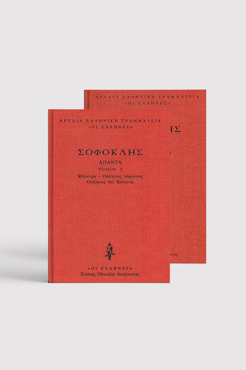 Οι σωζόμενες τραγωδίες του Σοφοκλή σε δίτομη σκληρόδετη έκδοση.